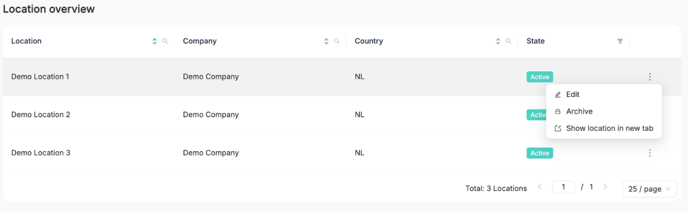 - Here you can quickly maintain, archive and look at the data from your Locations belonging to your Company.
